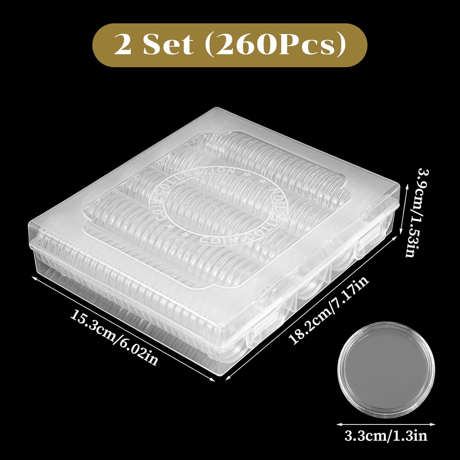 Enhance your coin collection experience with our 260 pcs 30mm coin capsules , designed to safely store and display a wide variety of coins. Each set includes foam cushions in 6 sizes (19/20/22/25/27/30mm) , ensuring a secure fit for different coin diameters. These coin capsules are ideal for both casual collectors and serious numismatists looking for reliable coin collection supplies .The clear plastic design allows for easy viewing of your coins without the need to remove them from the holder. The included protective gaskets help prevent scratches and damage, keeping your coins in pristine condition. Whether you're organizing silver dollar coins , commemorative pieces, or foreign currency, these coin holders offer both function and durability.This set also comes with a clear plastic storage organizer box , making it easy to keep your collection neat and accessible. Perfect for use as coin cases for collectors , this set supports efficient organization and protection across multiple collections.