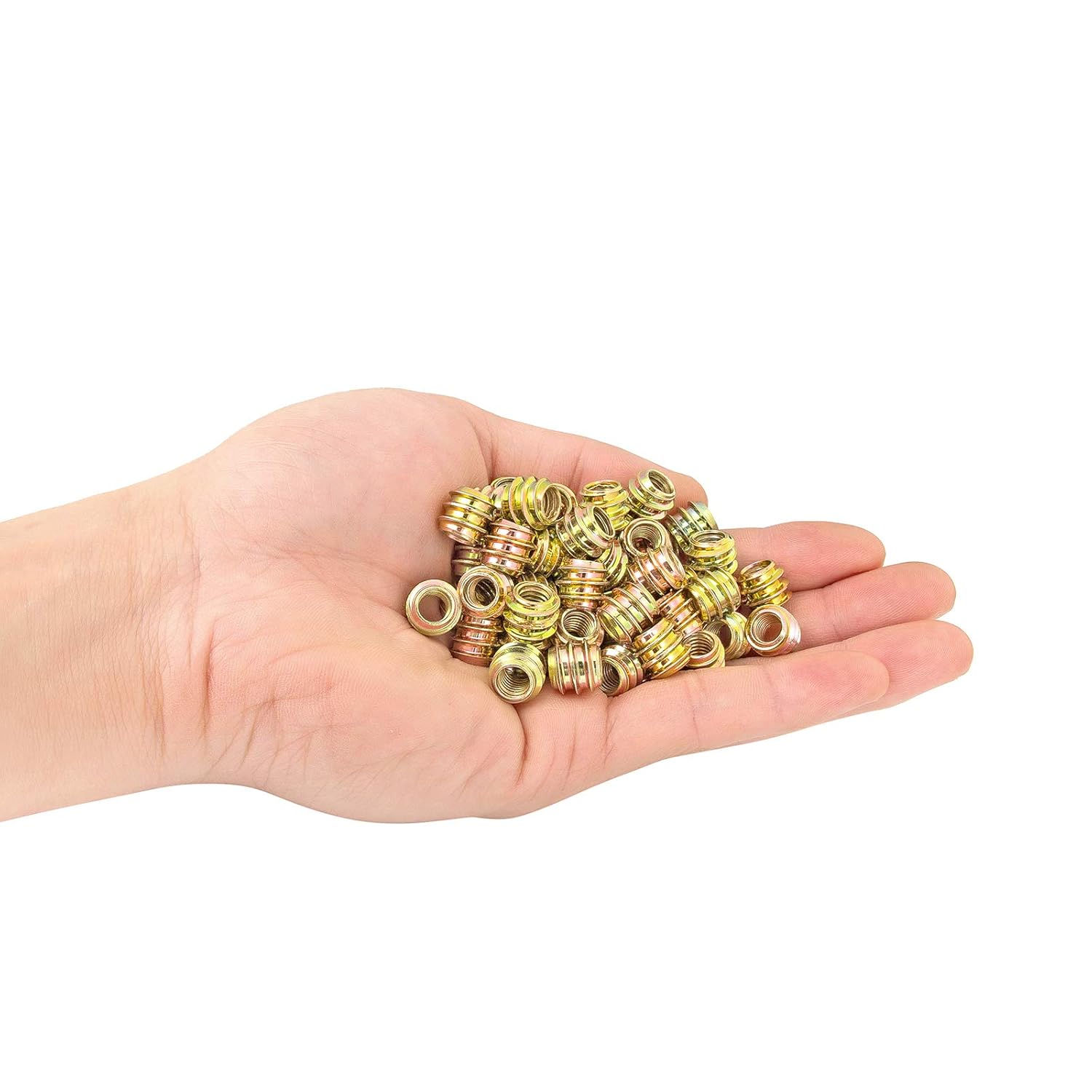 Metric Furniture Screws Flush Threaded Inserts set: 80 pieces 1/4"-20 Flush Furniture Screws Comes with 9.0mm White steel twist drill and 6mm drive tool. Features of insert nut: These threaded inserts are inserted into a pre-drilled hole by screwing in, in that case the external protrusions bite into the wood, preventing the nut from either turning or pulling out. Flush design permits insert to be installed below surface level. They can keep the two connected surfaces from meeting absolutely flush Suitable application: Easy to install and with good stability, have a good effect in the furniture combination, suit for all Furniture woods of pine, plywood, fiberboard, etc.. How to use: pre-drill/ drill a suitably sized hole and enter with the drive tool. PS:1. The hole depth is 1-2mm longer than furniture screw; 2.If that hardness of the wood material is high, enlarged a little bit the screw hole to fit the screw. Specification: Material: high hardness and high quality carbon steel Size: Furniture Screws: 1/4"-20 External Diameter:0.410”(10.5mm) Inside Diameter: 0.315”(8mm) Total Length: 10mm. Drill: 9.0mm Drive tool: 6mm Quantity: 80 x Furniture Screws 1 x Drill 1 x Drive tool Note: Small objects and sharp drill bits, please keep away from children