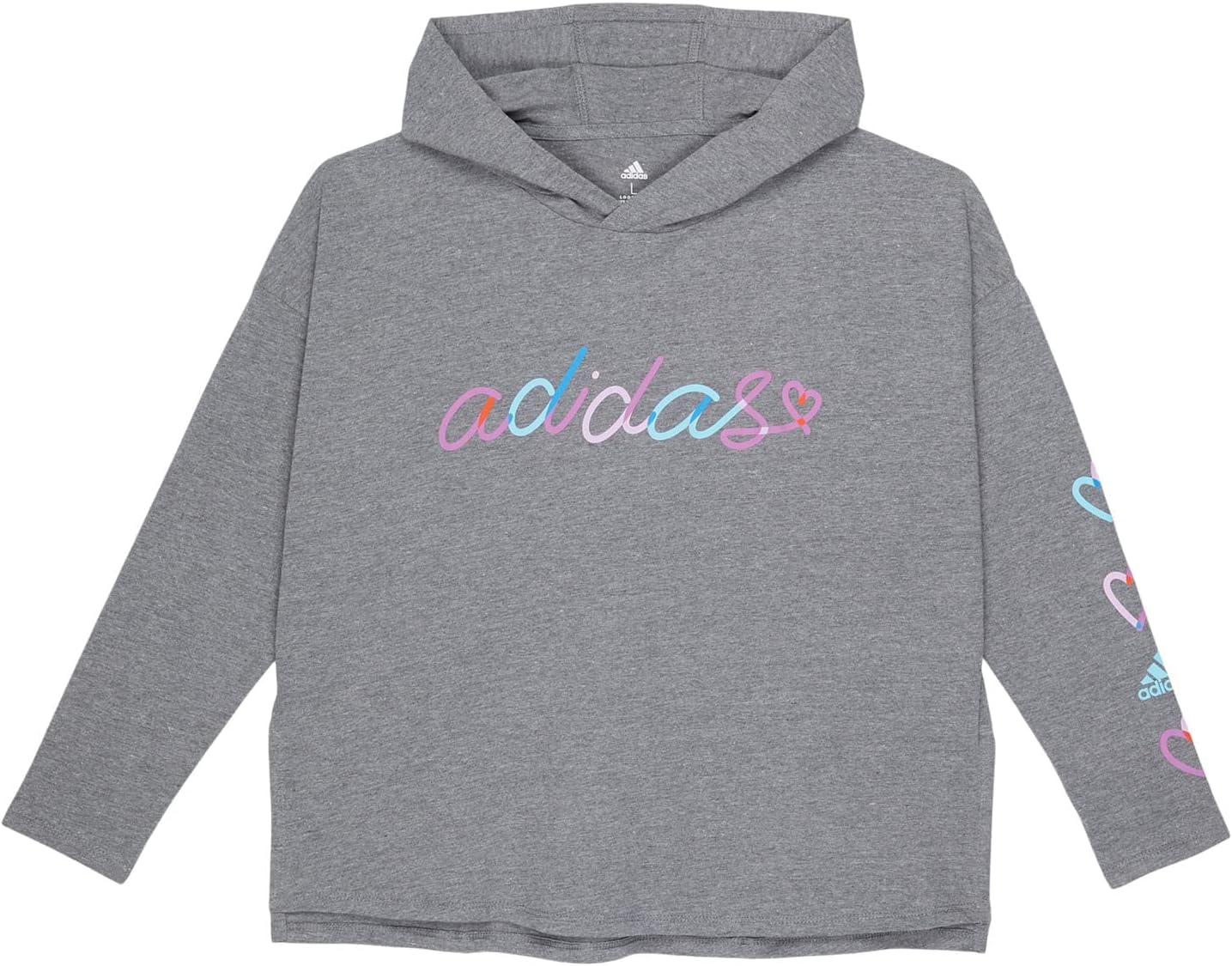 Everyone will know she's an adidas girl when she pops on this long sleeve girls' hoodie. The all-cotton jersey is soft and feels cozy against her skin. She can pop up the hood for extra warmth or to block out the world for a few minutes.