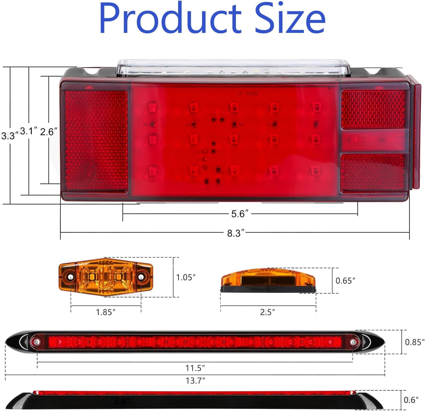 | Compatible with Vehicle Type | Boat Trailer Lights LED Submersible Kit, Boat Trailer Wiring Kit, Submersible LED Trailer Light Kit, LED Boat Trailer Lights, Boat Trailer Light Kit, Boat Trailer Lights and Wiring Kit, Boat Trailer Light, Trailer Tail Lights, Trailer Tail Light Kits, DOT Approval Trailer Lights |